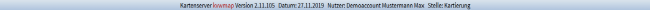 Maßstabsbalken: Der Maßstabsbalken zeigt die Größenverhältnisse des aktuellen Kartenmaßstabs in der Karteneinheit des gewählten Koordinatensystems an.