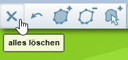 Die Rückgängig-Funktion soll dafür da sein, dass man sich mal verklickt hat. Wenn man alles löschen will, sollte man auch diesen Button nutzen. Wenn man einen Punkt anders haben will, den man z.B. vor 10 Klicks gesetzt hat ist es besser auf die Funktion „Eckpunkte bearbeiten“ zu wechseln und den einzelnen Punkt zu löschen oder anders zu setzen. Bei Rückgängig machen bleiben immer 3 Punkte zum Schluss stehen, weil ein Polygon nun mal aus mindestens 3 bestehen muss. Will man die auch nicht, dann Löschen.