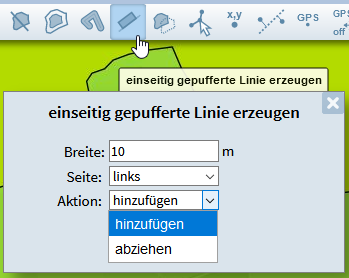 Das Tool 'einseitig gepufferte Linie erzeugen' erlaubt das hinzufügen und abziehen von Geländestrukturen eingesteller Breite zu und von einem Objekt. Es kann auch ein Polygon mit einer Linie geringer Breite (bspw. 0.1 m) geteilt werden.