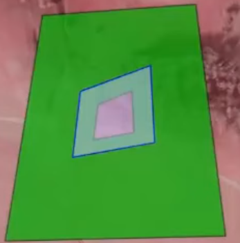 Anschließend wird mit 'mit vorhandener Geometrie ausschneiden' alles Überstehende entfernt. Hierfür muss das bestehende Polygon ausgewählt werden.