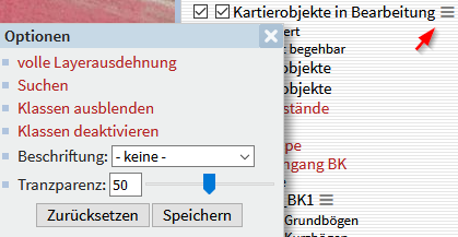 Die Bearbeitung der Geometrie erfolgt immer über den Bogen des Objektes. Die Objektbögen können entweder über die Kartenansicht per Informationsabfrage oder über die Liste angezeigt werden.