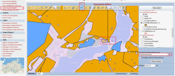 - Schritt: gewünschten Feldblock in der Karte anklicken.
