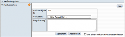 Die Eingabemöglichkeiten für Verlustobjekte sind: